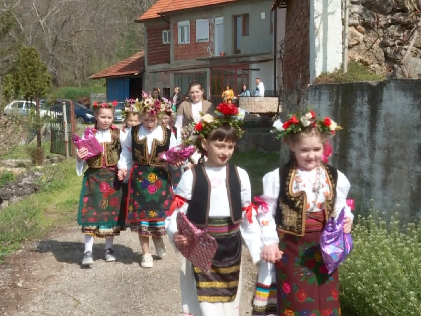 Devojčice obučene u narodnu nošnju odlaze od kuće do kuće i pevaju, a domaćini ih daruju, verujući da im njihova pesma i igra donose rodnu godinu, zdravlje i berićet.